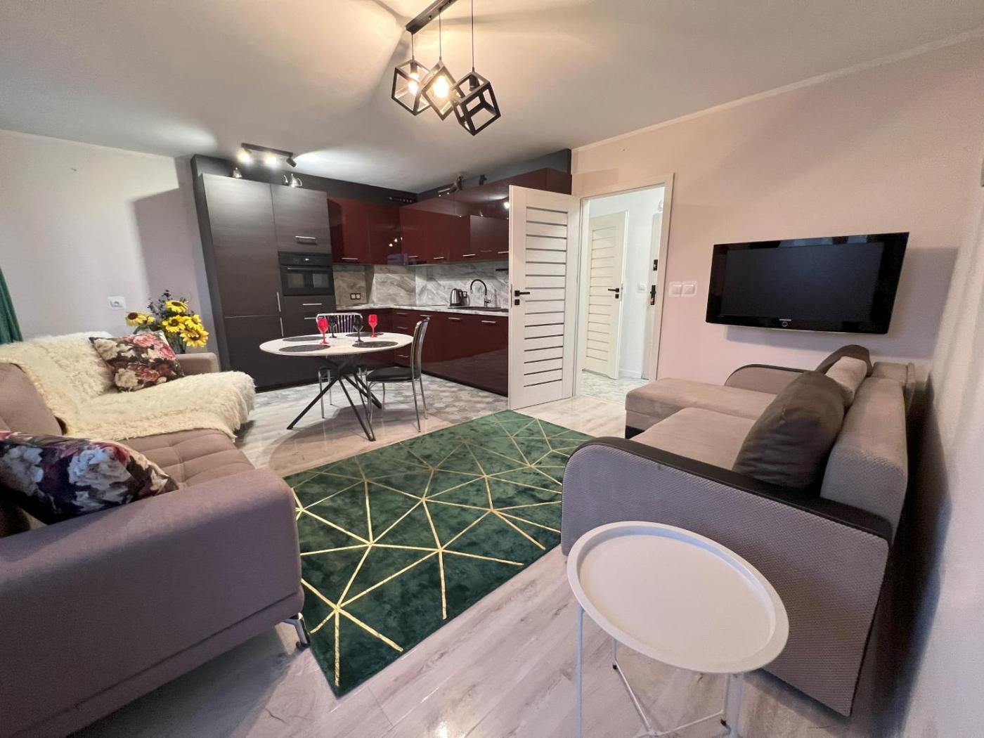 Apartament z 1 sypialnią. In the well-equipped kitchenette, guests will find a stovetop, a refrigerator, a dishwasher and an oven. The air-conditioned apartment features a flat-screen TV, a washing machine, a wardrobe, an electric kettle as well as city views. The unit has 2 beds. Apartament - 4 osobowy. Powierzchnia pokoju ok.: 48 mkw.