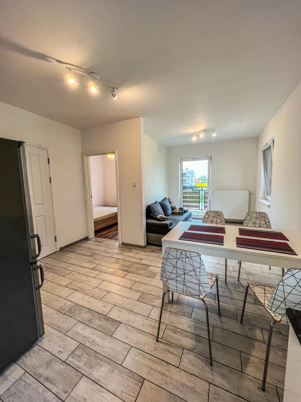 Apartament z 1 sypialnią. This apartment is comprised of 1 living room, 1 separate bedroom and 1 bathroom with a shower. Guests can make meals in the kitchen that comes with a stovetop, a refrigerator, kitchenware and an oven. This apartment comprises a dining area, a flat-screen TV with cable channels a washing machine and a balcony. The unit offers 2 beds. Apartament - 4 osobowy. Powierzchnia pokoju ok.: 41 mkw.