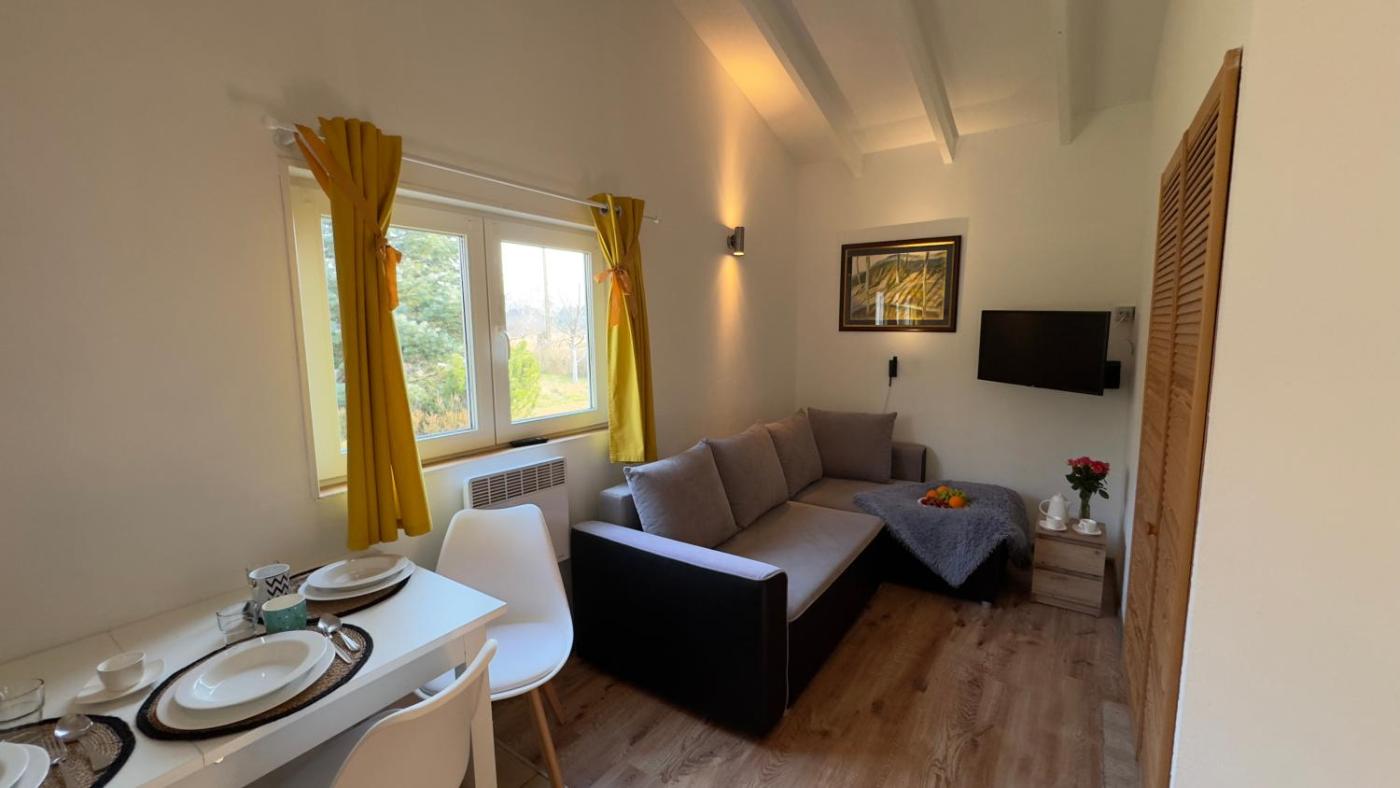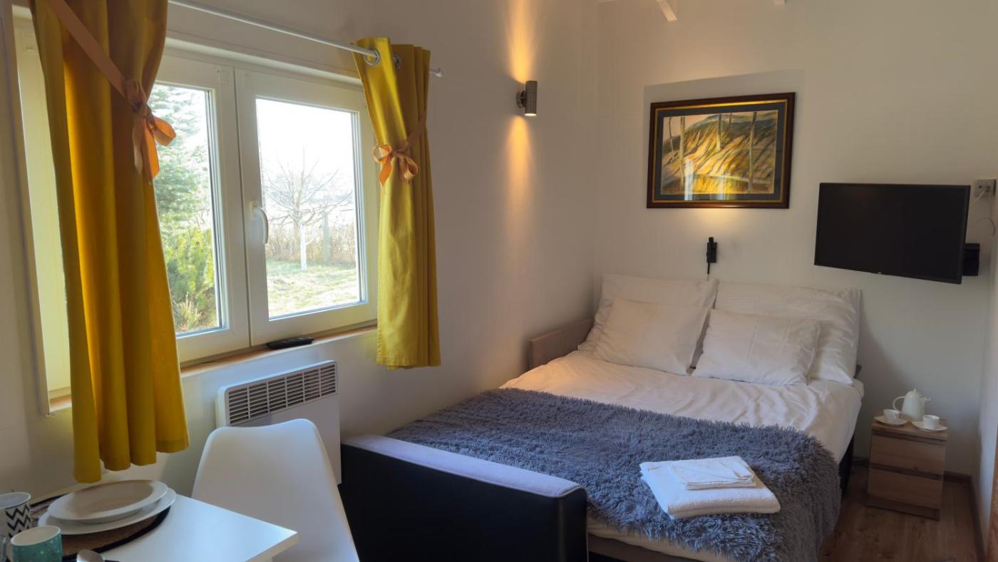 Domek z 1 sypialnią. This chalet features 1 living room, 1 separate bedroom and 1 bathroom with a walk-in shower and a hairdryer. Meals can be prepared in the kitchenette, which has a stovetop, a refrigerator, a dishwasher and kitchenware. Boasting a terrace with garden views, this chalet also features a washing machine and a flat-screen TV. The unit has 3 beds. Domek - 4 osobowy. Powierzchnia pokoju ok.: 30 mkw.
